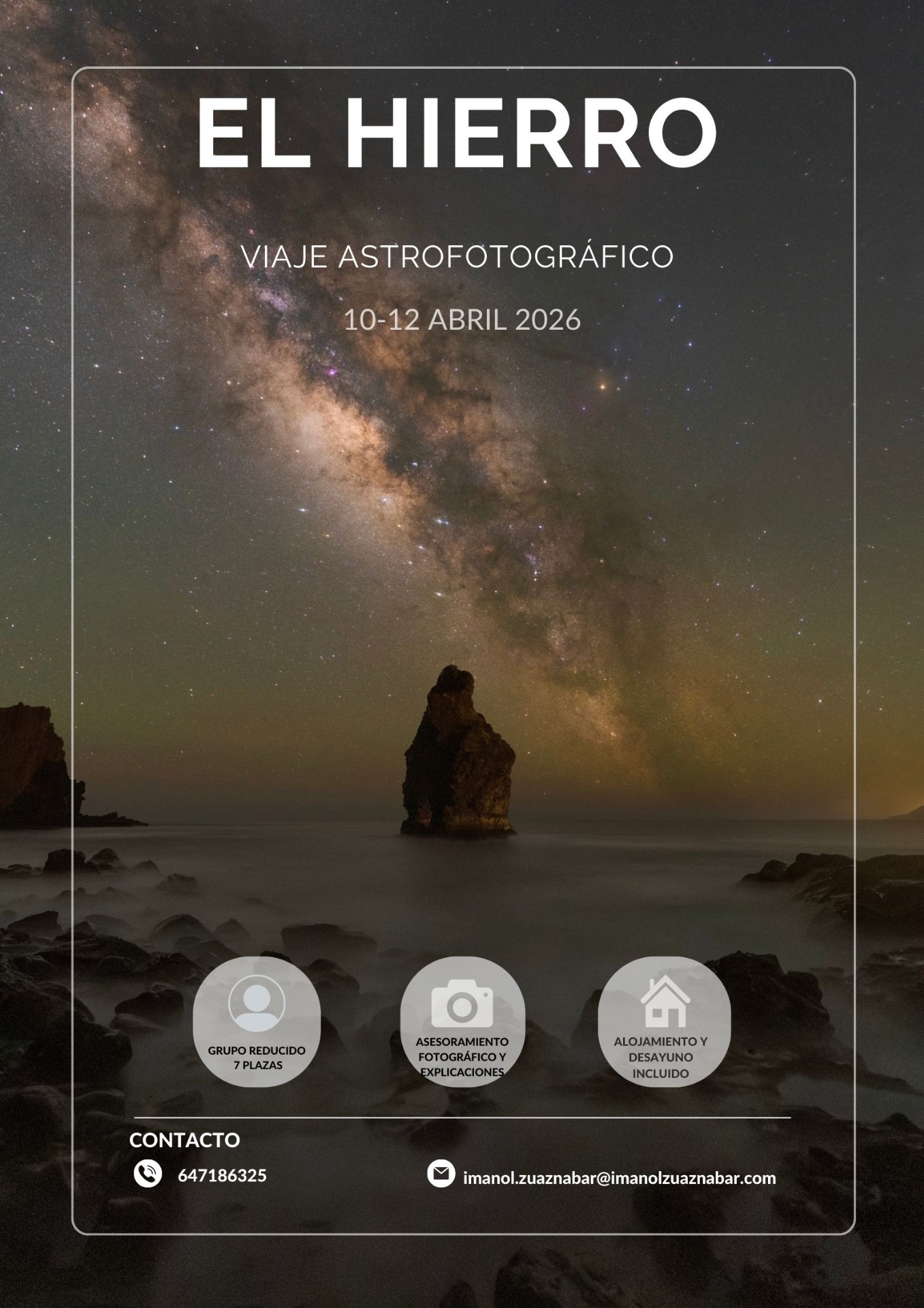 Durante dos noches recorreremos los mejores lugares de la isla para realizar astrofotografías, y más en concreto fotografías de la Vía Láctea. Probaremos varias técnicas in situ, haremos una introducción al uso de los star tracker y pasaremos unas noches inolvidables llenando las tarjetas de memoria con fotografías espectaculares. Y todo en un grupo reducido de sólo 7 plazas.